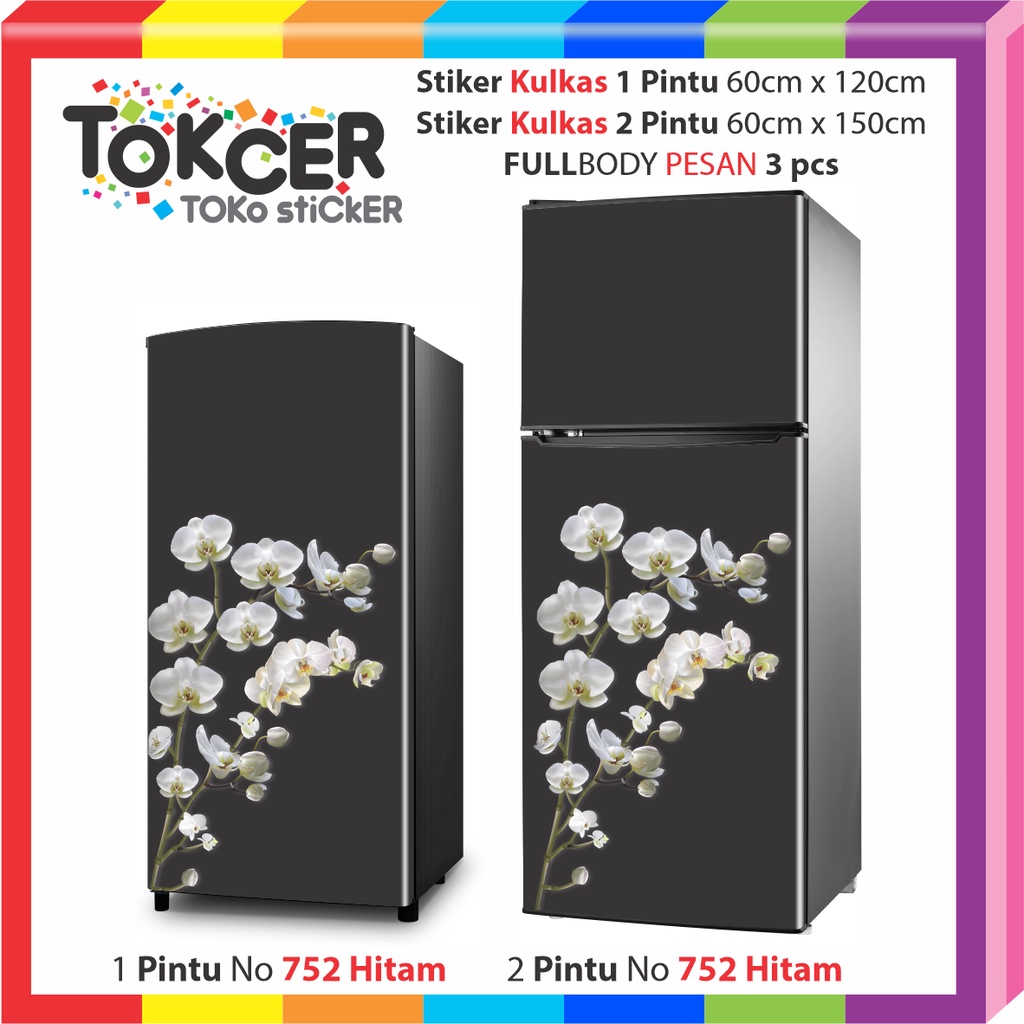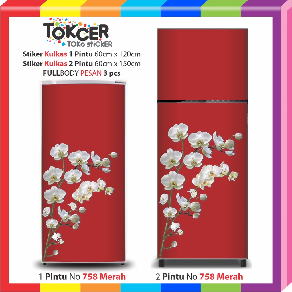 STIKER Kulkas LAMINATING GLOSSY Anti LUNTUR uk 1 Pintu atau 2 Pintu Bunga Putih