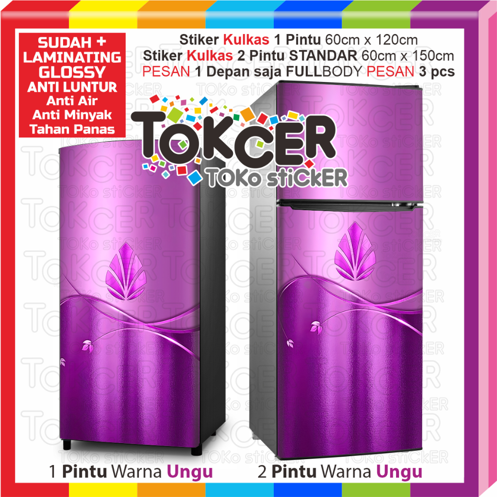 Stiker Kulkas LAMINATING GLOSSY Anti LUNTUR uk 1 Pintu atau 2 Pintu STANDAR Motif Daun BRONZE Anti AIR Anti GORES