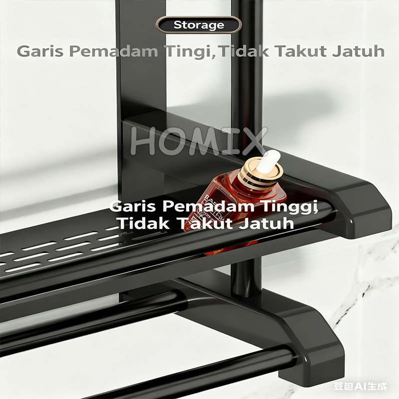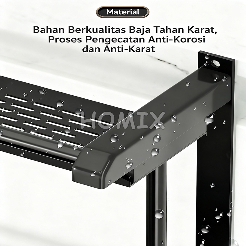 HOMIX Rak Kamar Mandi Stainless Hitam – Tempel Tanpa Bor, Anti Karat & Tahan Lama untuk Sabun / Sampo