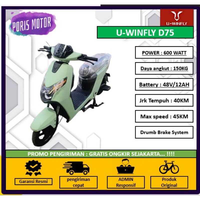SEPEDA LSTRIK POWER 600W UWINFLY D75 GARANSI RESMI TERLARIS