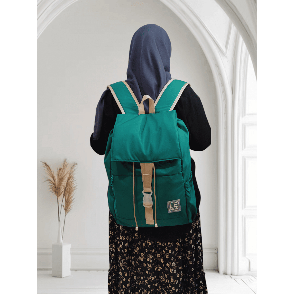 Lenoa Floria Tas Ransel Wanita Besar Serut Laptop 14 inc Untuk Sekolah dan kuliah Gaya Korean Style
