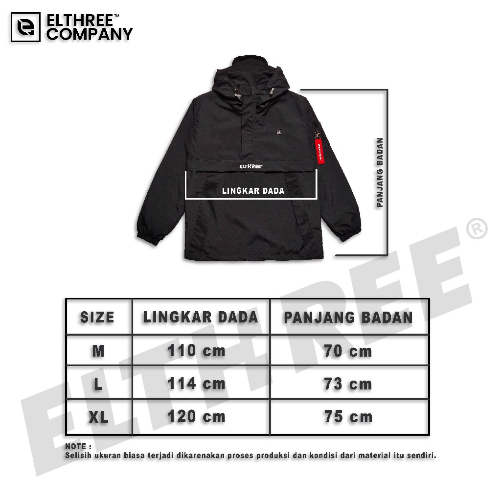 JAKET PRIA HOODIE PRIA HITAM ELTHREE COMPANY JAKET GORPCORE BLACK BORDIR PRIA JAKET CAGOULEJ AKET OUTDOOR PRIA TERLARIS