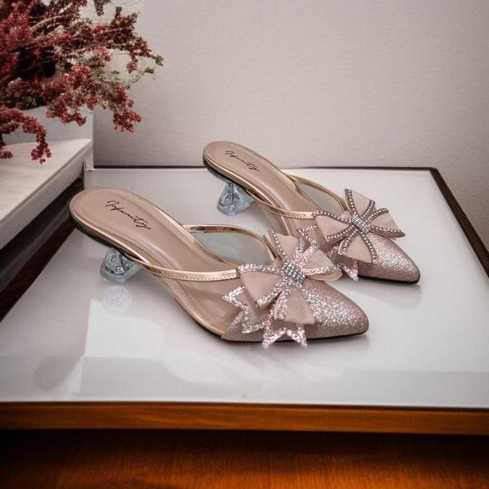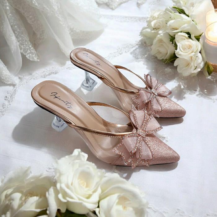 SANDAL HAK TINGGI INFINITY ASW_015 7CM HEELS KACA SHOES PESTA ELEGANT SESERAHAN PERNIKAHAN GRADUATION WISUDA - HITAM, 36