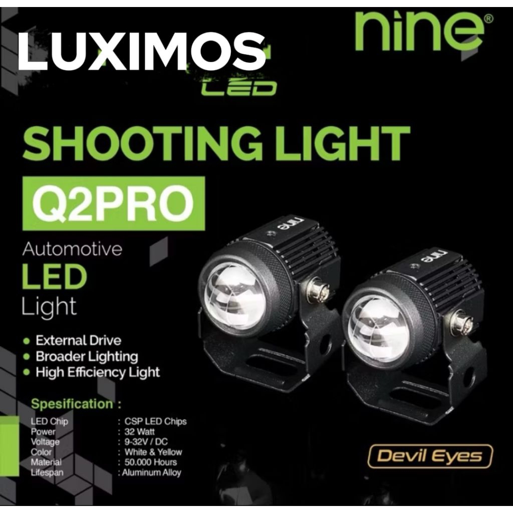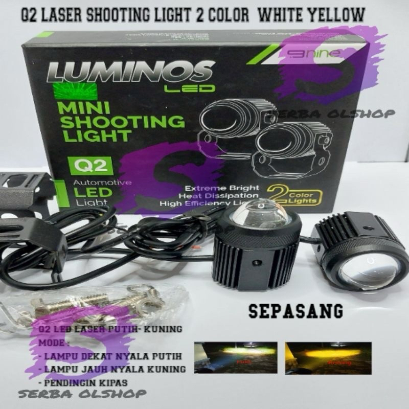 NINE LED SEPASANG LAMPU SOROT LASER /TEMBAK MINI Q2 DAN Q2PRO SHOOTING LIGHT LASER DUA WARNA PUTIH KUNING TEMBUS KABUT MOTOR DAN MOBIL ORIGINAL NINE