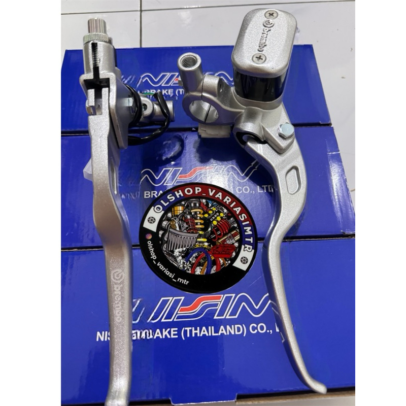 PAKETAN FULL SILVET MASTER REM TABUNG KOTAK BIG LOGO+SELANG REM SERAT SILVER 90-95CM SEMUA MOTOR