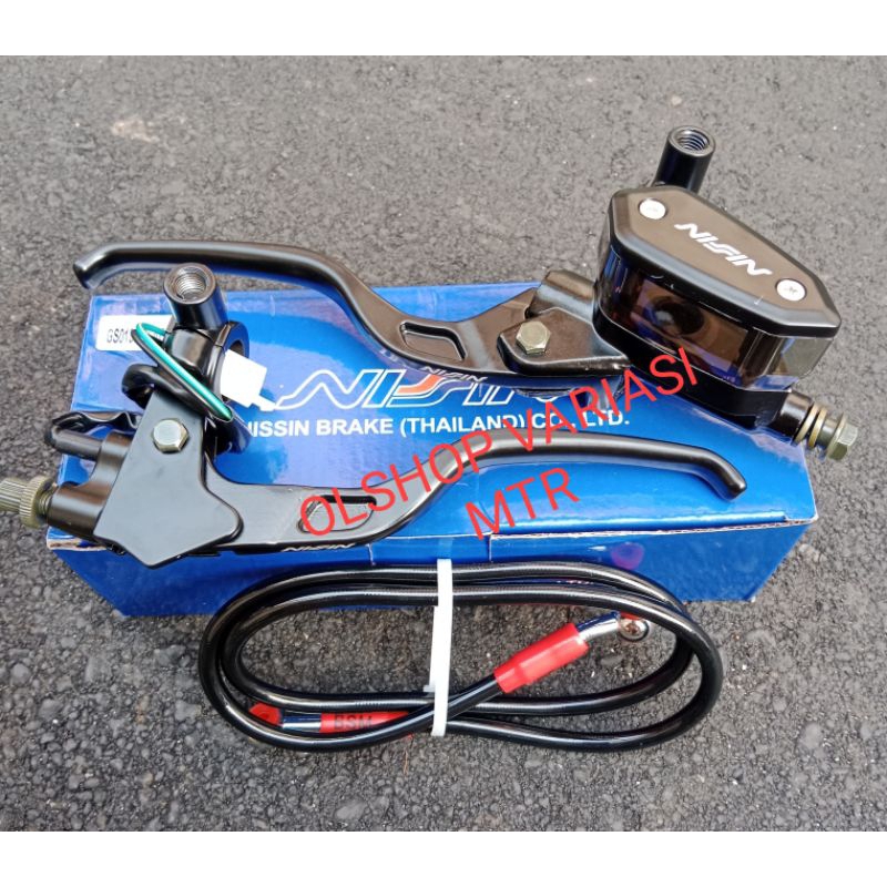 HANDLE MASTER REM OVAL KACA SMOKE+SELANG REM CAKRAM 95CM HITAM SERAT SEGALA JENIS MOTOR