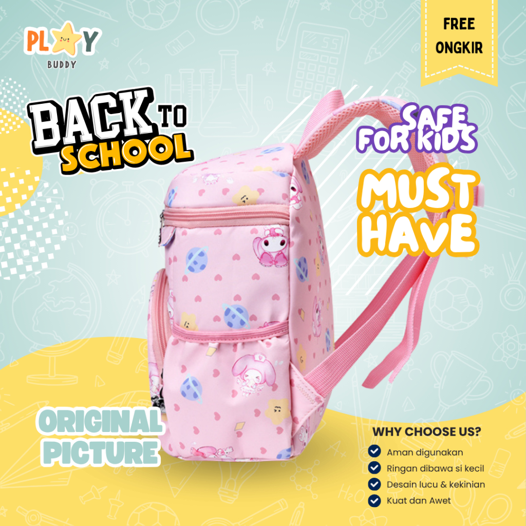 [GRATIS KEYCHAIN] Playbuddy Tas Sekolah Anak Perempuan Mimi | Ransel TK PAUD Backpack Melody Kuromi