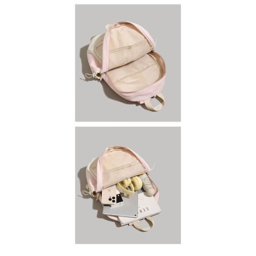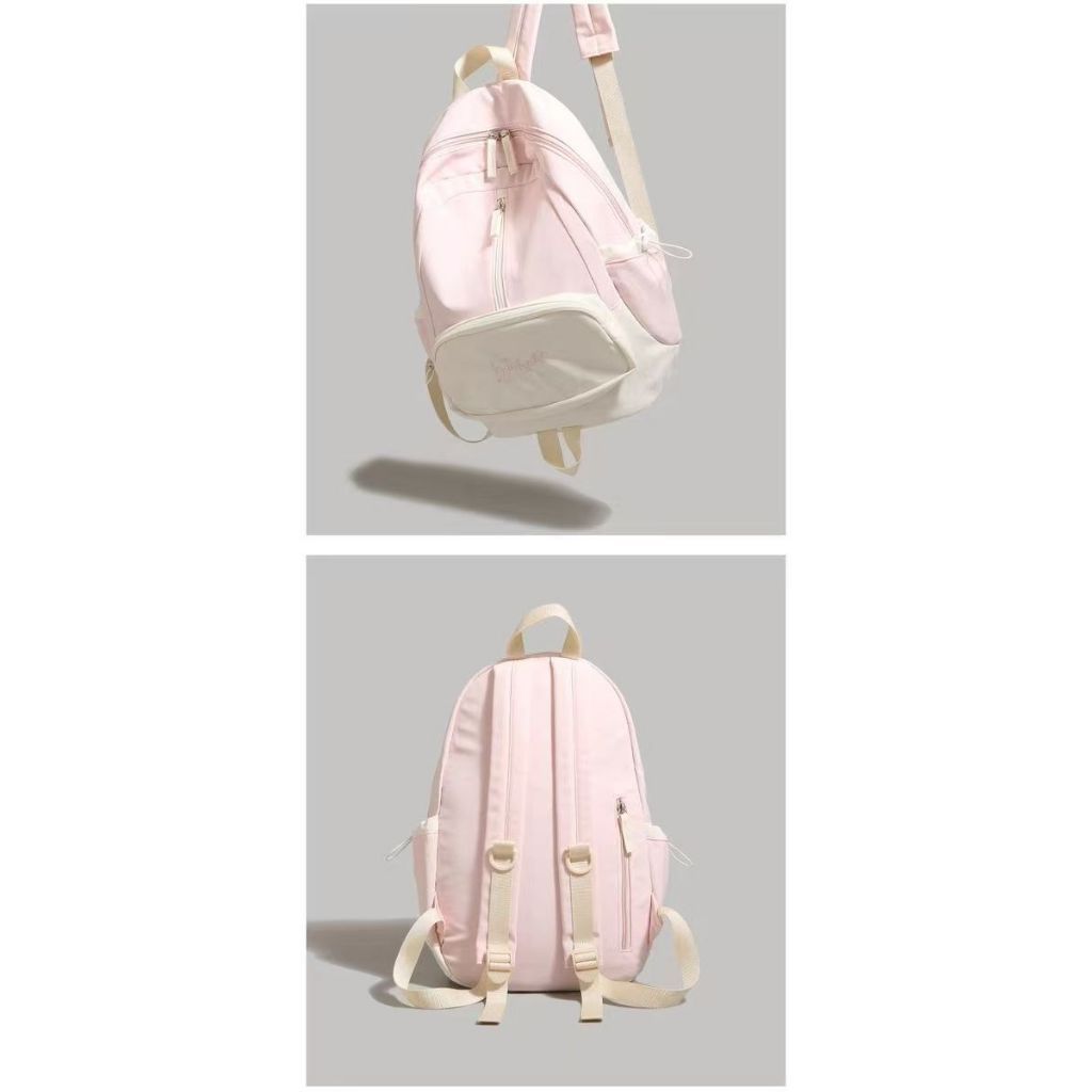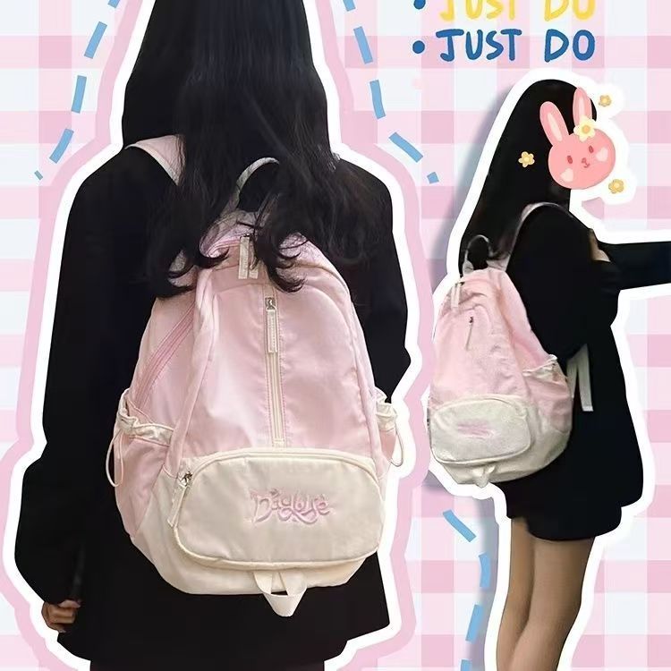 tas sekolah y2k aesthetic tas ransel wanita laptop 14 inch tas ransel wanita cewek tas gaya kampus Amerika gaya kampus baru warna pink