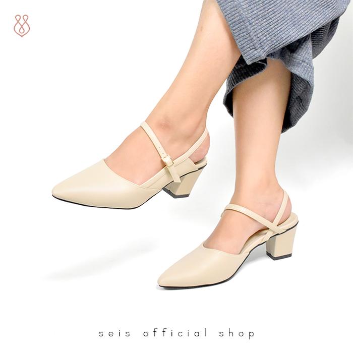 SEIS PAMELA MULES HEELS WANITA | SLINGBACK HAK 5 CM SHOES SENDAL - MOCCA, 36