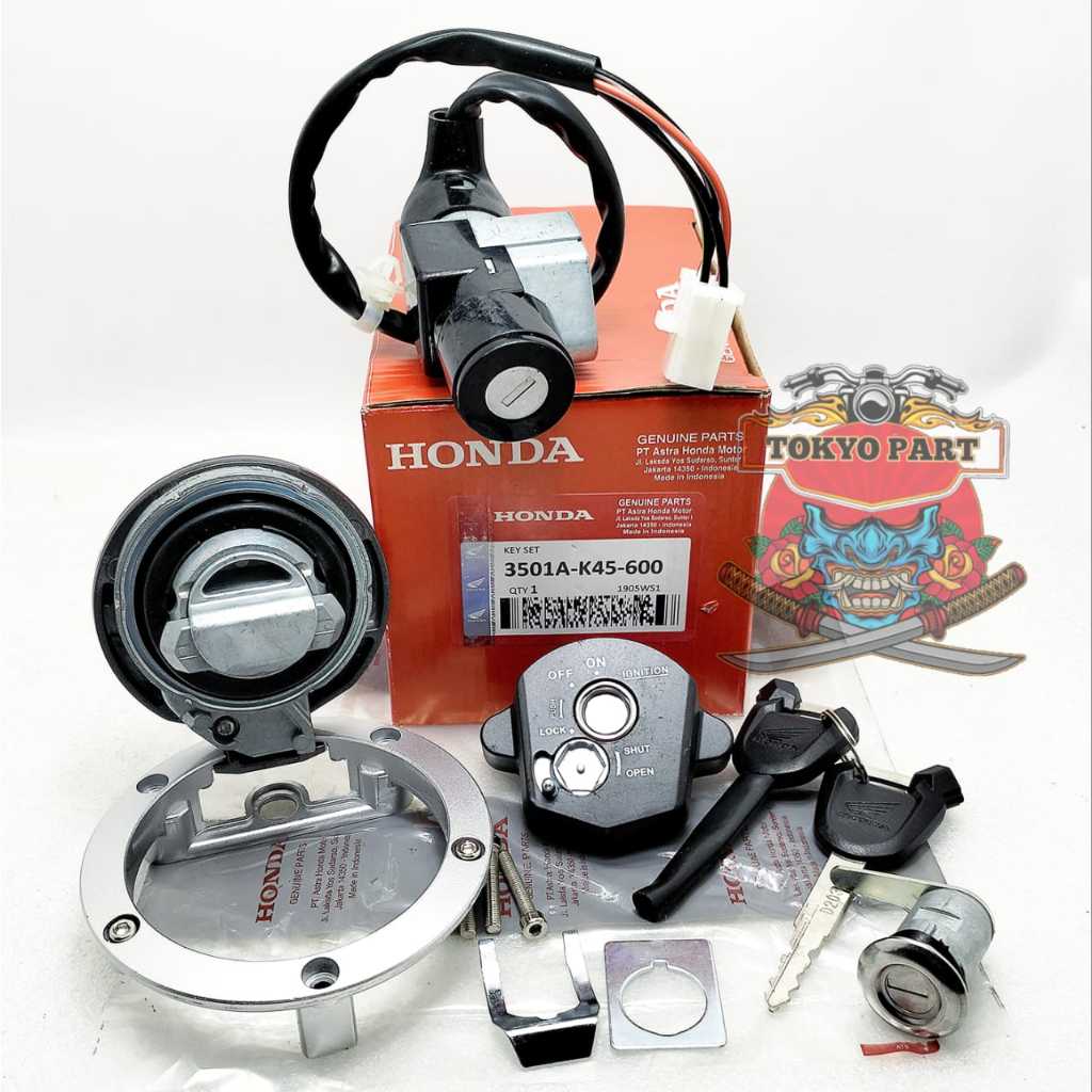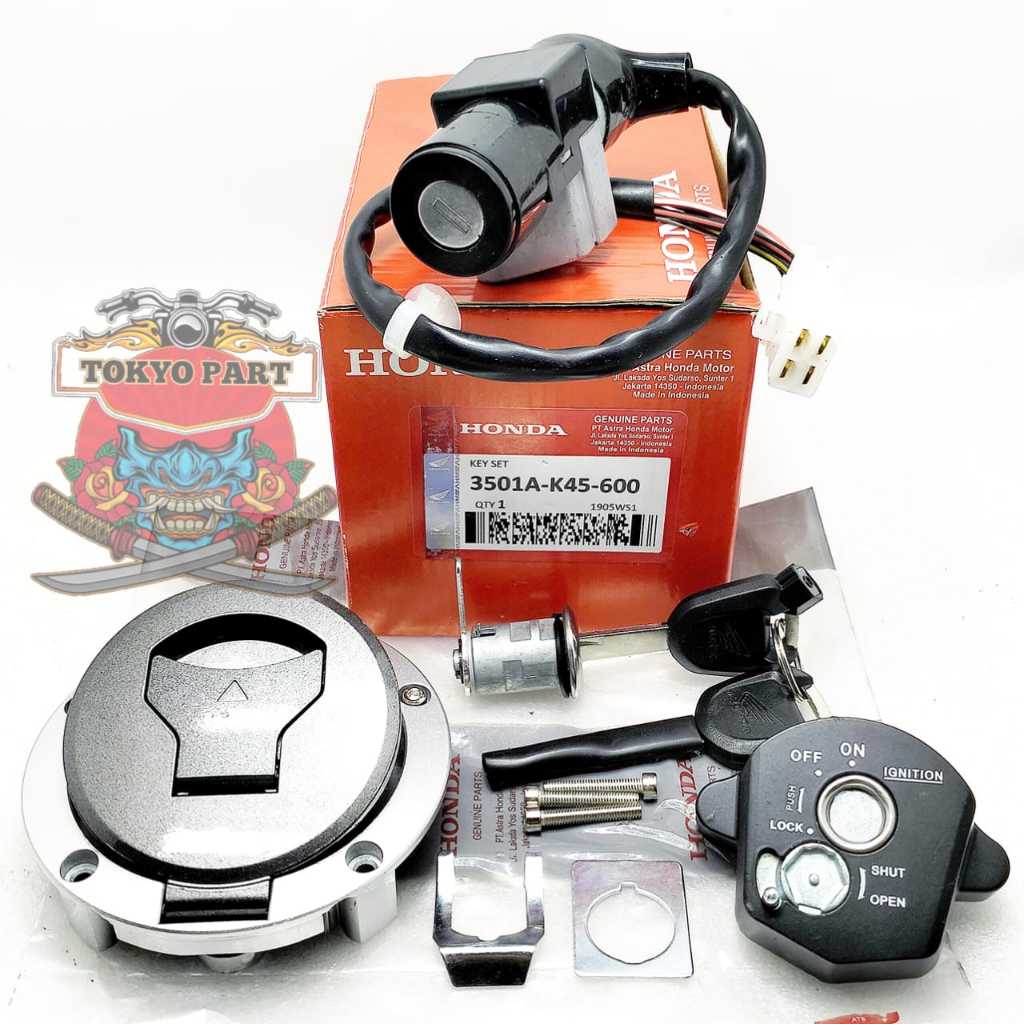 KUNCI KONTAK ASSY / KEYSET SUDAH TERMASUK TUTP TANKY, KUNCI JOK KONCI KONTAK ORI HONDA K45 KUALITAS ASLI ORIGINAL AHM PR