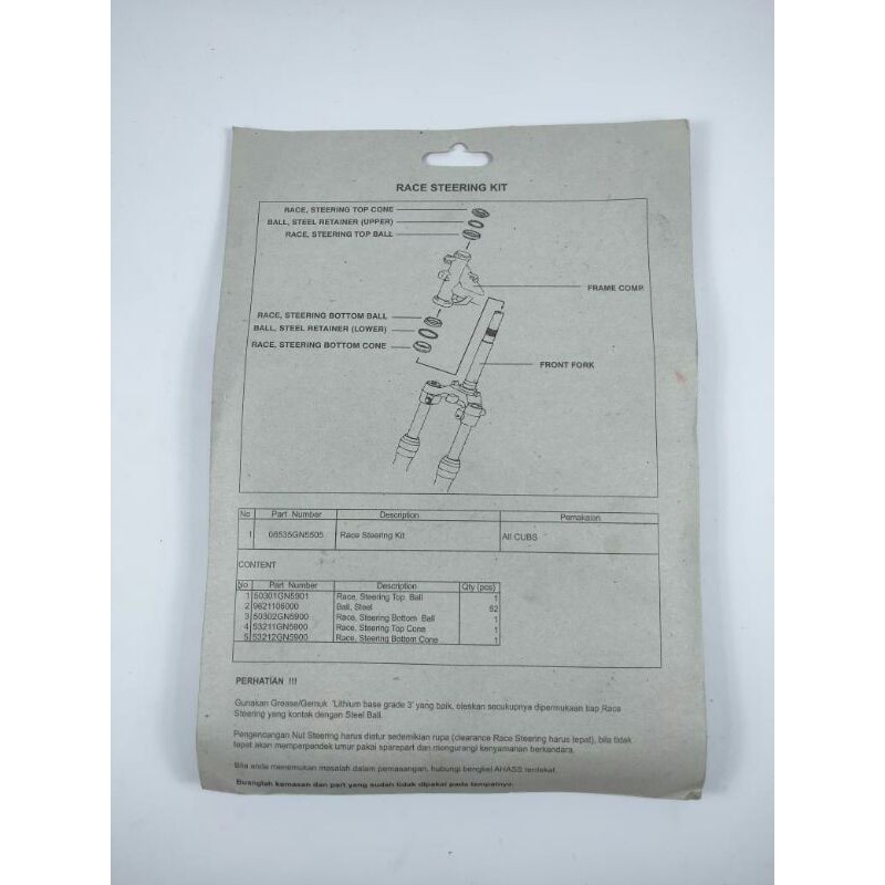 Comstir BEAT GN5 VARIO 110 FI 125 SUPRA KARISMA REVO ABS BLADE komstir bearing klahar stang stir KUALITAS ORIGINAL ASLI