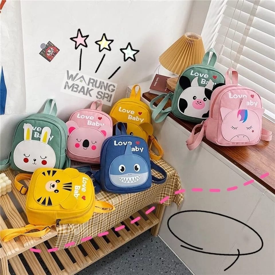 Tas Ransel Sekolah Anak Paud & TK Motif Binatang Lucu umur 2-4 tahun Warunk Mbaksri