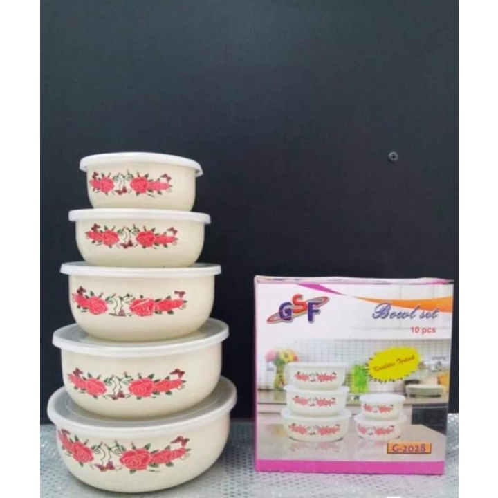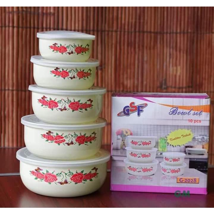 RANTANG SUSUN 5 MANGKOK SET BERANAK MANGKUK PENYIMPANAN MAKANAN MOTIF BUNGA GSF 2028 / RANTANG SUSUN 5PCS MOTIF BUNGA GS