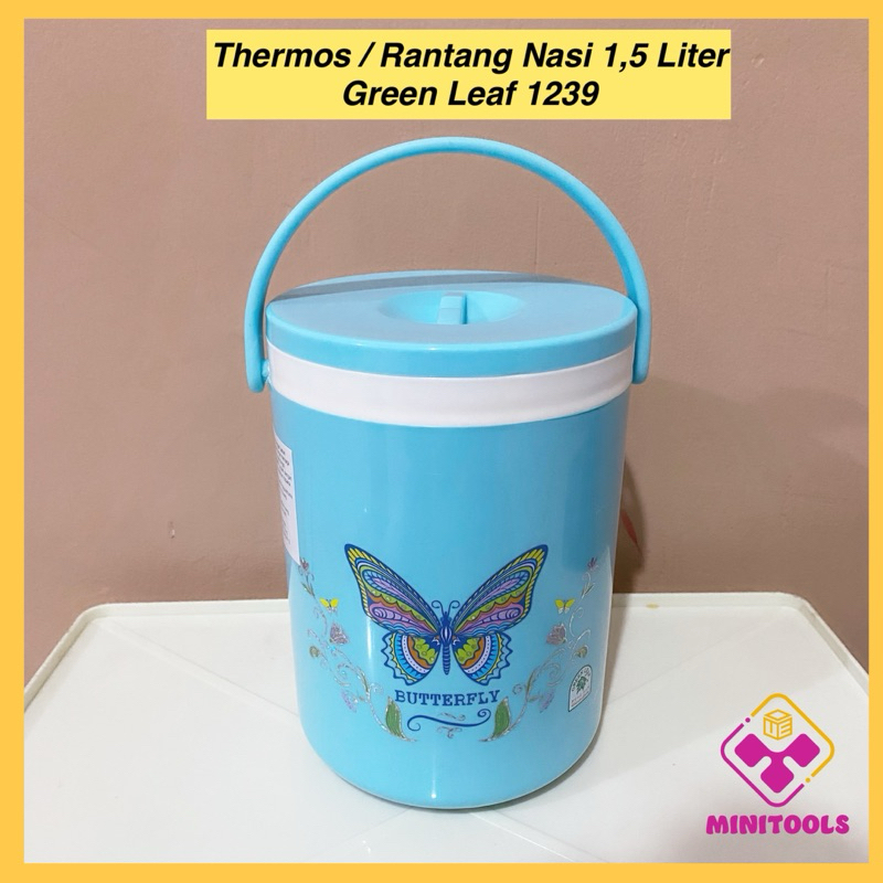 THERMOS NASI / RANTANG NASI 1,5 LITER / RANTANG MINI / THERMOS ES BATU / TEMPAT NASI MINI / GREEN LEAF 1239