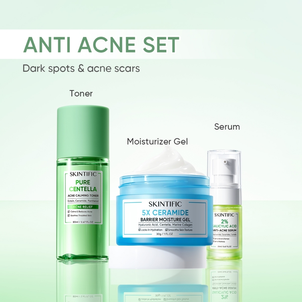 [Mall] SKINTIFIC OFFICIAL STORE Paket 3 Pcs Skincare Set-Toner Serum Moisturizer Gel Day Night Brightening Peeling Solut