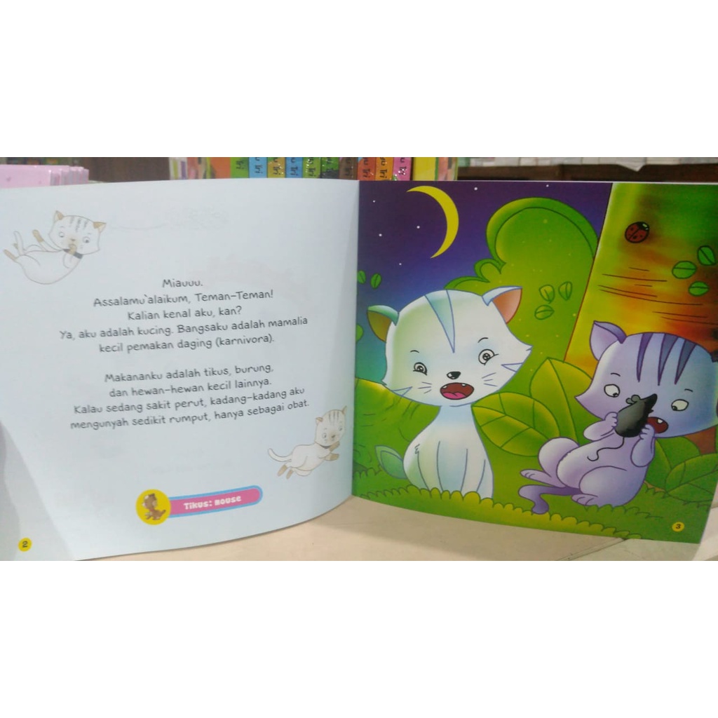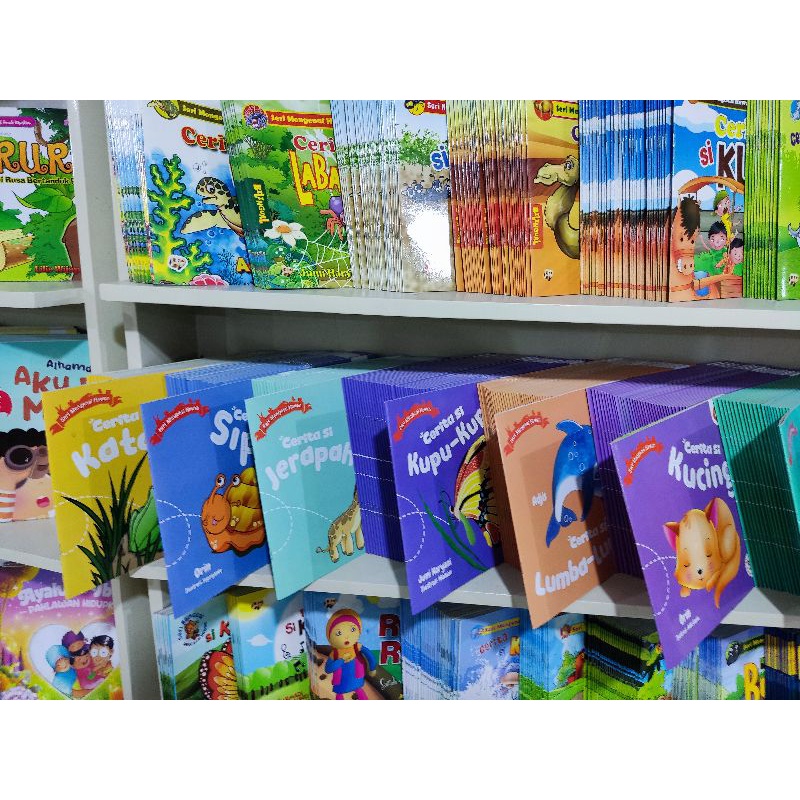 Cerita Si Kucing, Cerita Si Ayam, Cerita Si Gajah, Cerita Si Kelinci, Cerita Si Bebek, Cerita Si Jerapah, Cerita Lumba-lumba, Cerita Si Capung, Cerita Si Sapi, Cerita Si Kuda, Cerita Si Laba-Laba, Cerita Si Siput, Cerita Si Lebah, Cerita Si Katak, Cerita Si Kupu-Kupu, Cerita Si Domba, Cerita Si Semut, Cerita Burung Hantu, Cerita Si Kura-Kura, Cerita Si Buaya, Cerita Si Singa, Cerita Si Kuda Nil, Cerita Si Zebra, Cerita Si Unta, Cerita Si Penyu