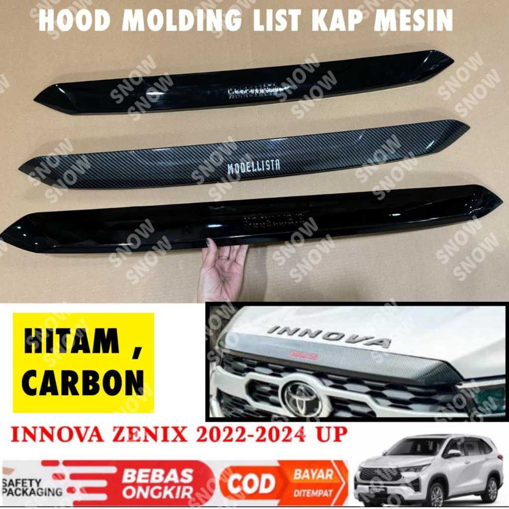 Hood Molding Zenix elista 2022 2024 2025 2026 Up List Kap Mesin Hitam Carbon Glossy Doff