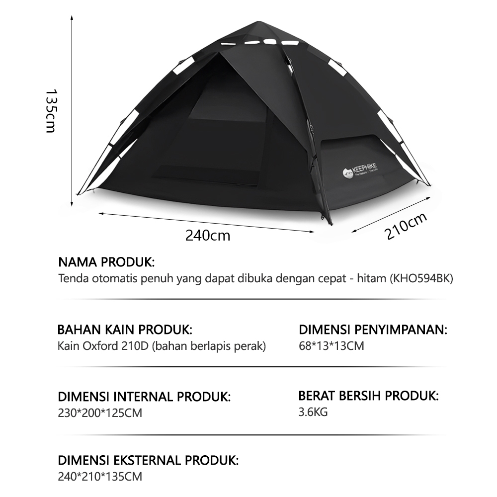KEEPHlKE tenda dua lapis outdoor || Tenda lipat portabel untuk berkemah tahan air, kapasitas 6 orang