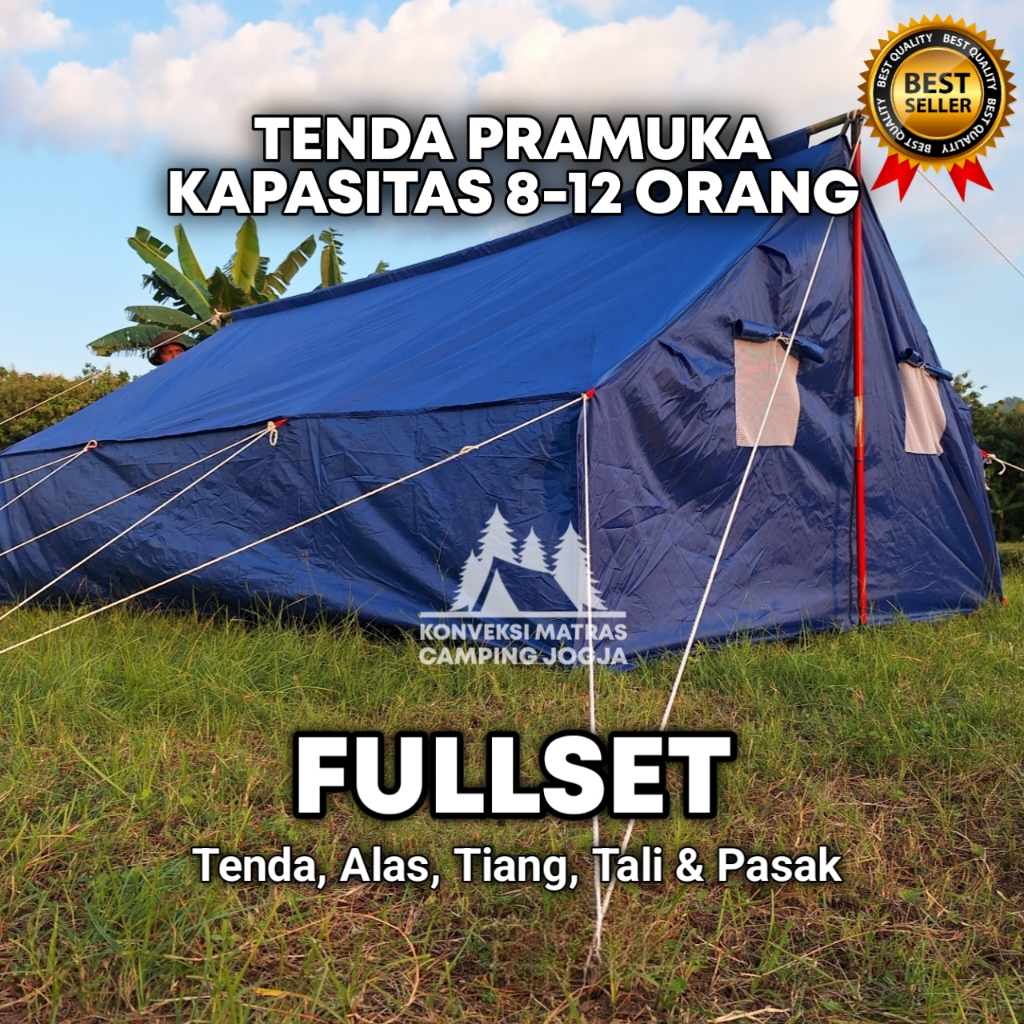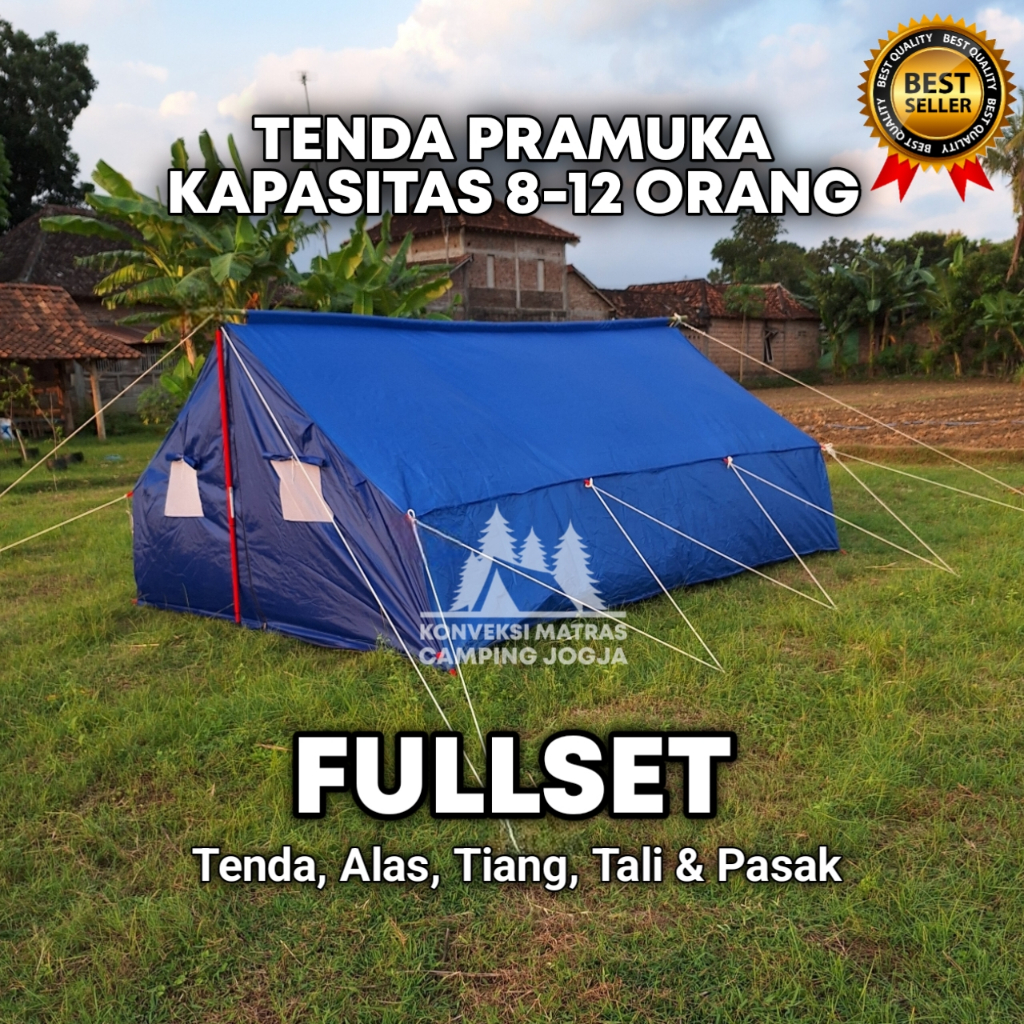 Tenda Pramuka Kap 8-12 FULLSET Tinggal Pakai | Termasuk Alas Tiang Tali & Pasak