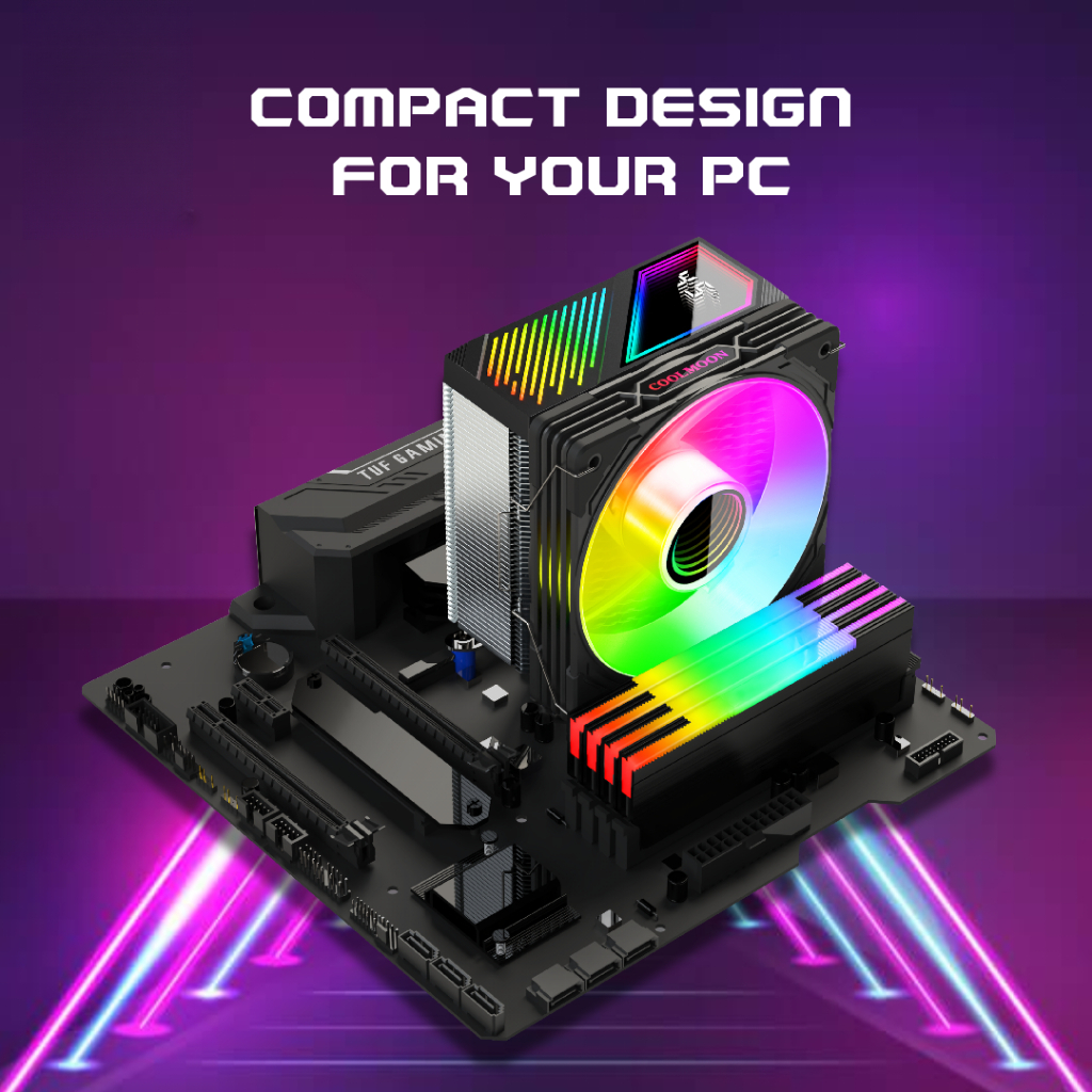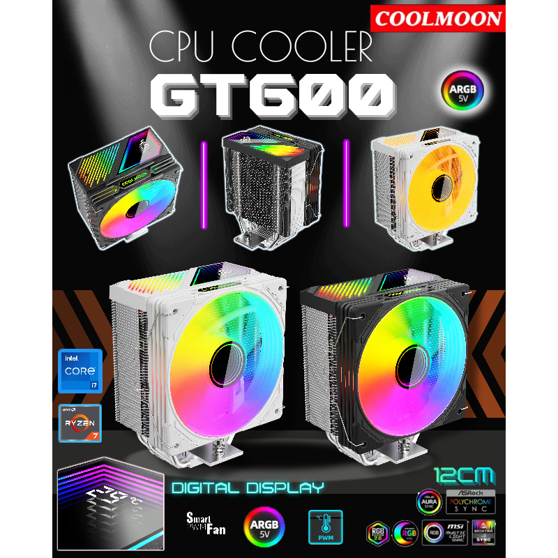 COOLMOON CPU COOLER GT600 ARGB DIGITAL TEMPERATUR DISPLAY FAN PROSESOR