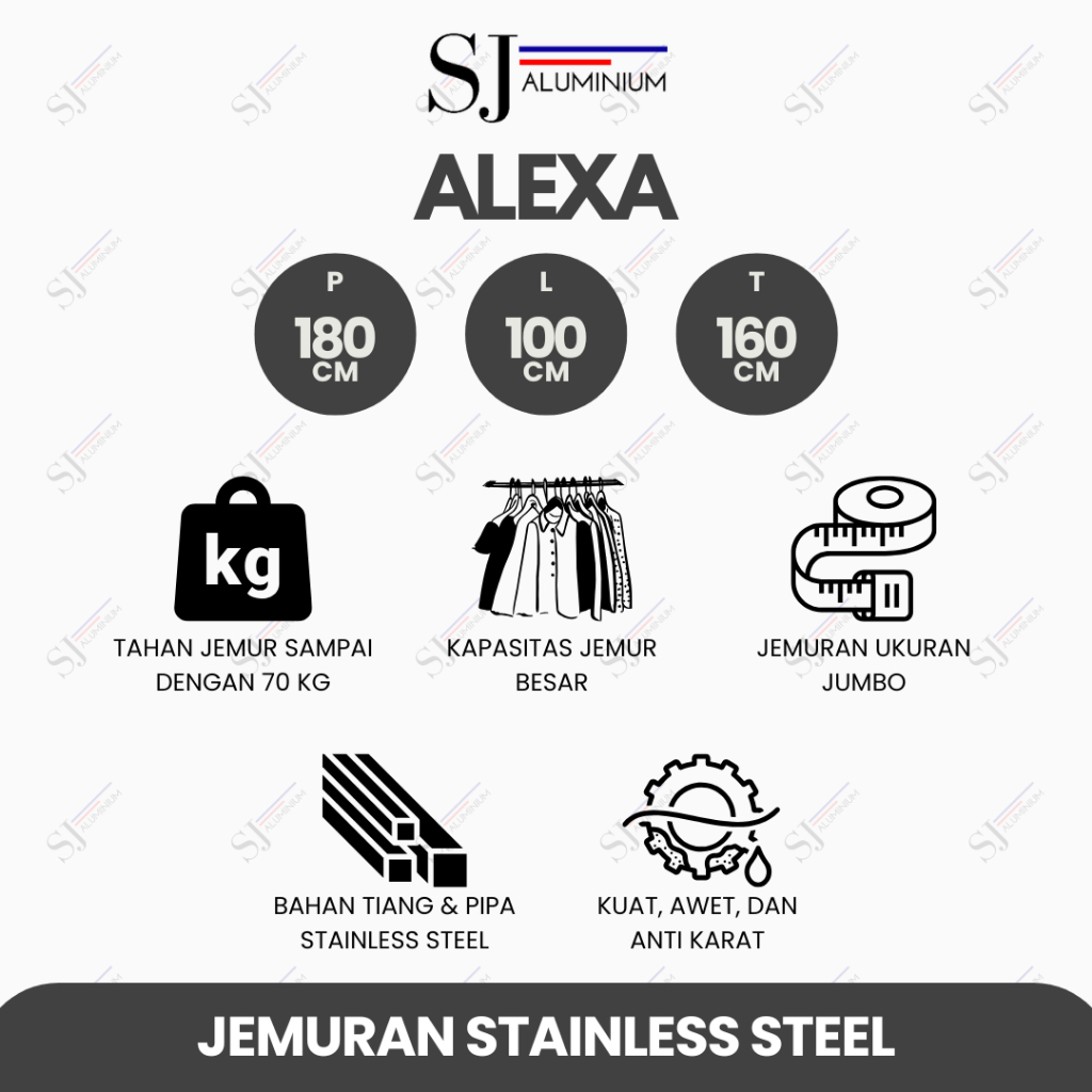 [SJA] ALEXA - Jemuran Stainless Steel Jumbo / Jemuran Baju & Pakaian / Rak Handuk / Jemuran Lipat - 180 CM