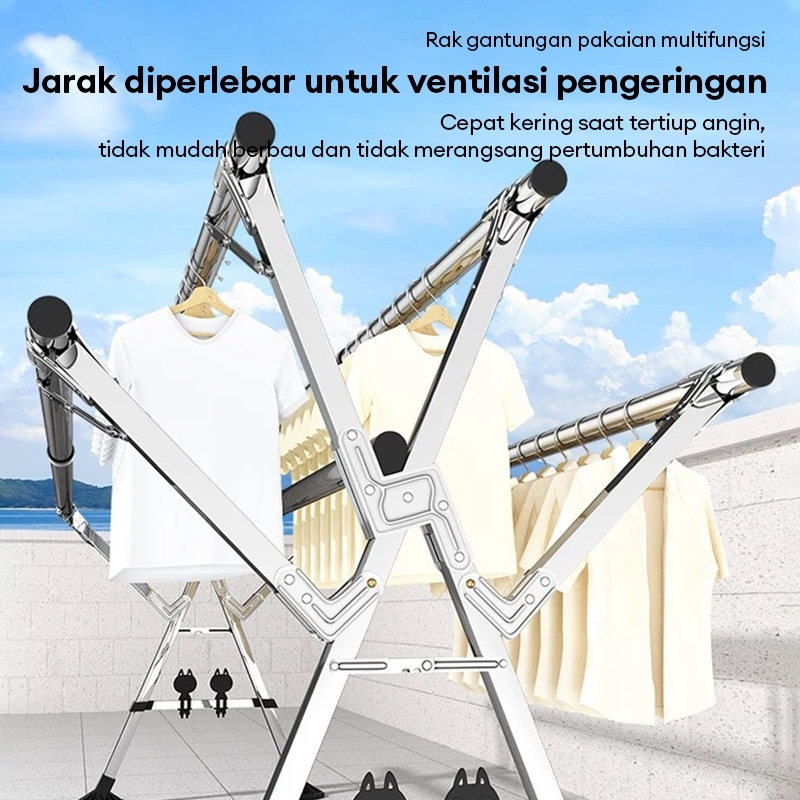 Jemuran baju stainless lipat besi kuat Tiang pengering pakaian multifungsi Rak pengering pakaian lantai