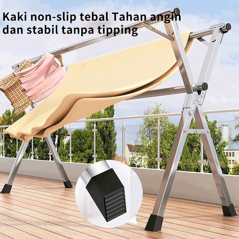 AYLIAO SUS 304Jemuran Baju Lipat Stainless Steel 160-240cm Jemuran Pakaian Lipat Jemuran Pakaian Outdoor / Indoor