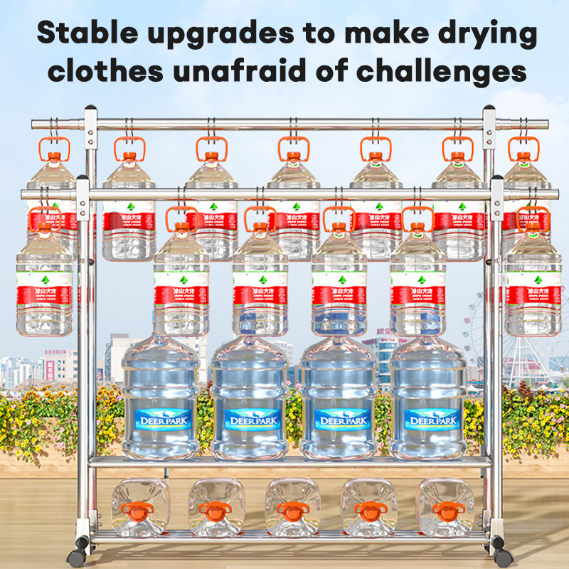 Rak Gantungan Baju Berdiri Stainless Steel Tebal Jemuran Baju Stainless Jemuran baju Dobel Pool Roda