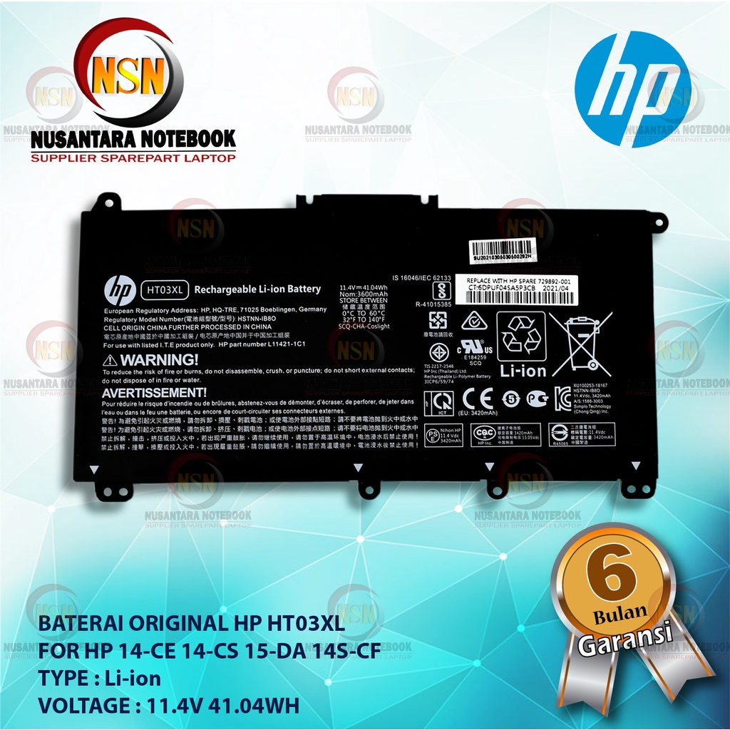 Baterai Original Laptop HP HT03XL For HP 14-CE 14-CS 15-DA 14S-CF
