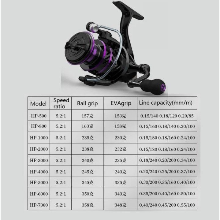 Reel Pancing Metal HP1000 - 7000 10 Kg/ Reel Pancing Tarikan Full Besi Murah Ungu Kuat/ Reel Ryobi/