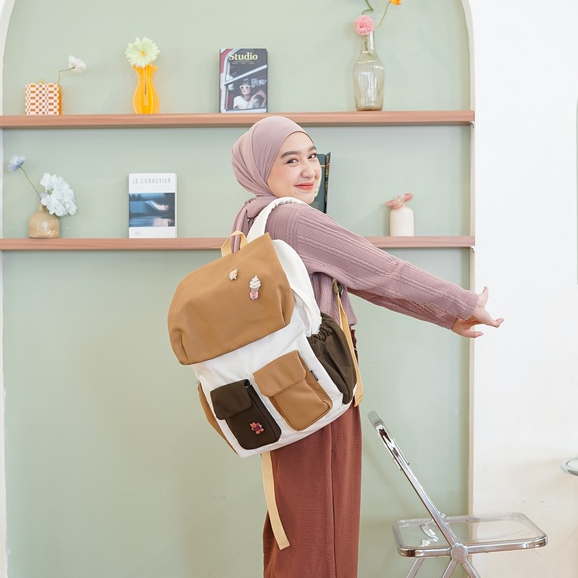 Himeku PORU Backpack - Tas Besar - Tas Sekolah Kuliah Kerja - Ransel Kanvas Wanita
