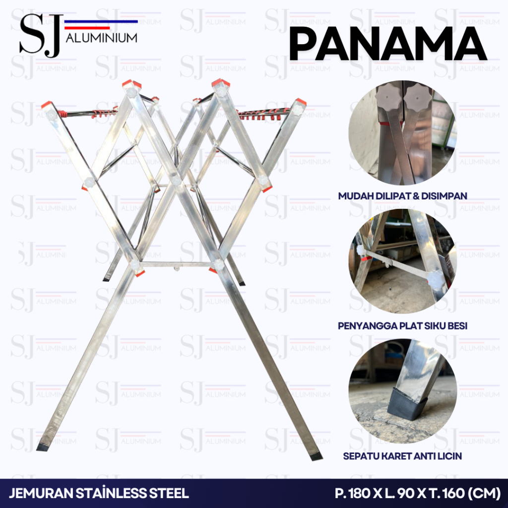 Jemuran Stainless Steel Jumbo PANAMA - Jemuran Baju / Pakaian / Rak Handuk - Jemuran Bayi - Palang 9 Tahan Beban 100 KG