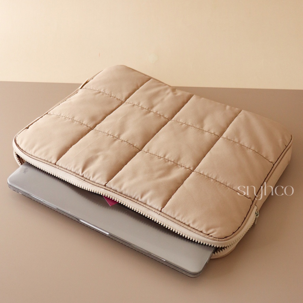 Tas Laptop Sleeve Puffy Zipper Pastel Waterproof 14 - 15 inch