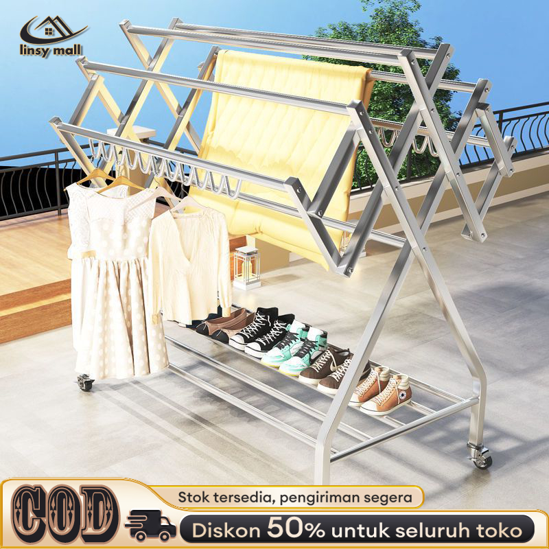 Jemuran Baju Stainless Jumbo Dengan Rak Sepatu Jemuran Baju 160CM Jemuran Pakaian Stainless Kuat