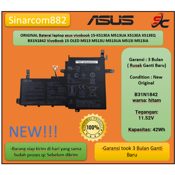 ORIGINAL Baterai laptop asus vivobook 15-K513EA M513UA X513EA X513EQ B31N1842 VivoBook 15 OLED M513 M513U M513UA M513I M