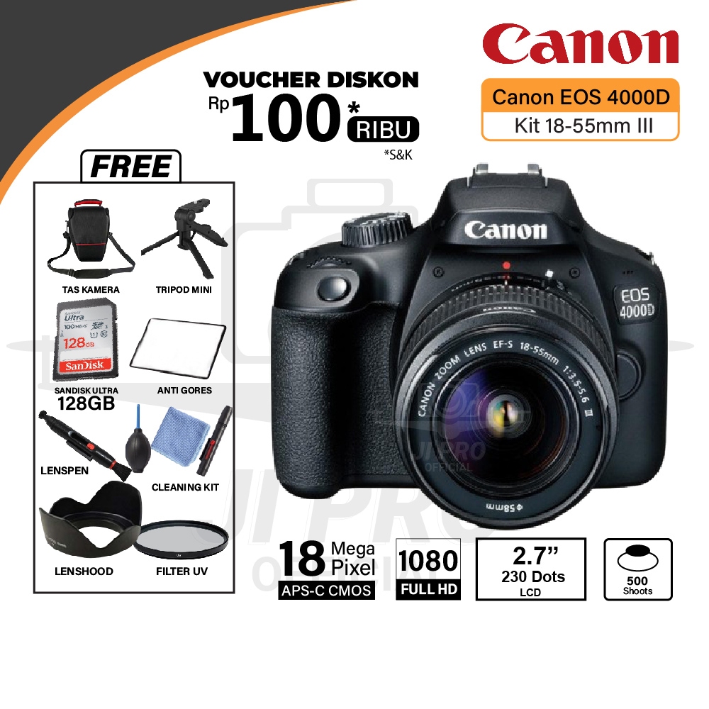 Canon EOS 4000D Body Only / Kit 18-55mm III - Camera DSLR Canon EOS 4000D kit 18-55MM IS II - 18-55MM IS STM