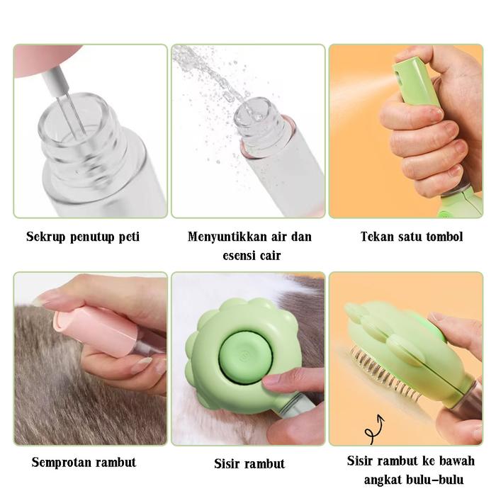 WAJIB PUNYA ! PET SISIR UAP 3 IN 1 SISIR UAP PET GROOMING BRUSH SPRAY SILIKON ANJING SISIR MANDI PIJAT HEWAN - PUTIH ORI