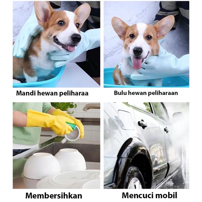 WAJIB PUNYA ! [HACIKO PETSHOP] PET GROOMING GLOVES SARUNG TANGAN SHOWER HEWAN PELIHARAAN - BLUE ORI