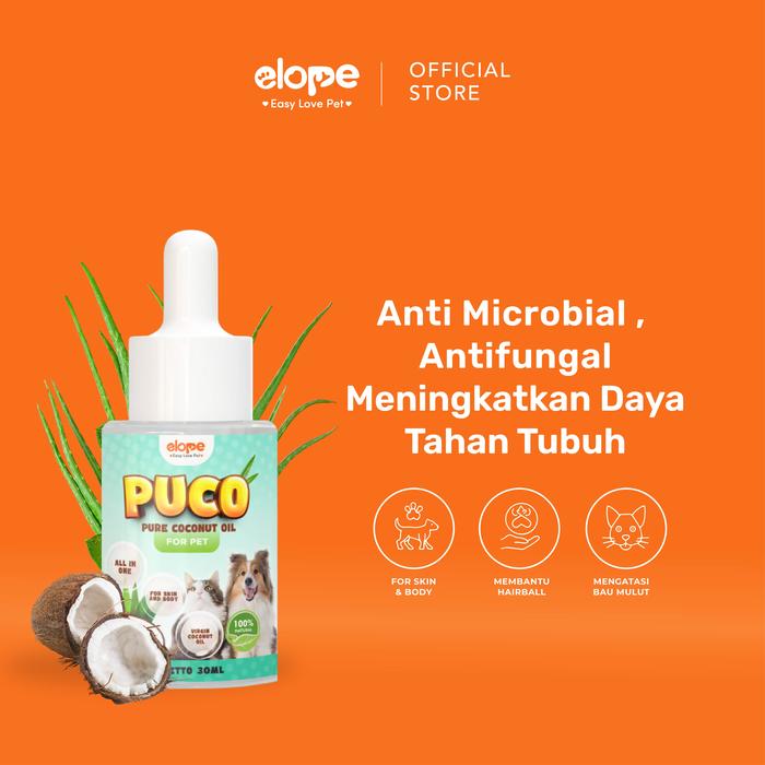 WAJIB PUNYA ! ELOPE PUCO EXTRA VIRGIN COCONUT OIL MINYAK VCO KUCING ANJING JAMUR SCABIES - PUCO 30ML ORI