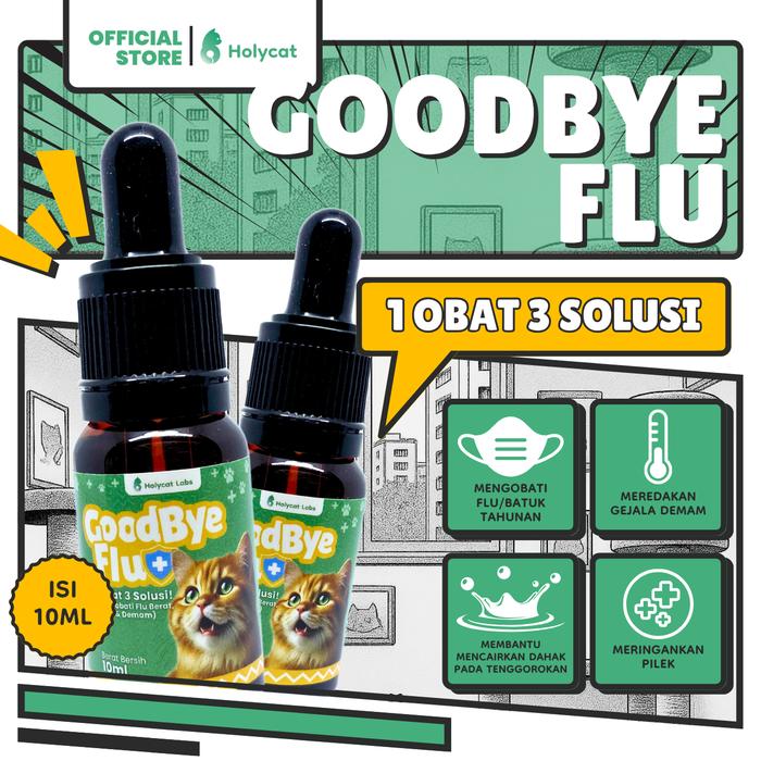 WAJIB PUNYA ! HOLYCATLABS GOODBYE FLU 3 SOLUSI MENGOBATI FLU BERAT, BATUK, DAN DEMAM KUCING 10ML ORI