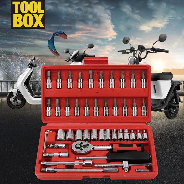 MEGA SALE KUNCI SOK 46 PCS SET SOCKET (1/4) FULL LENGKAP SOCKET TOOL KIT BEST