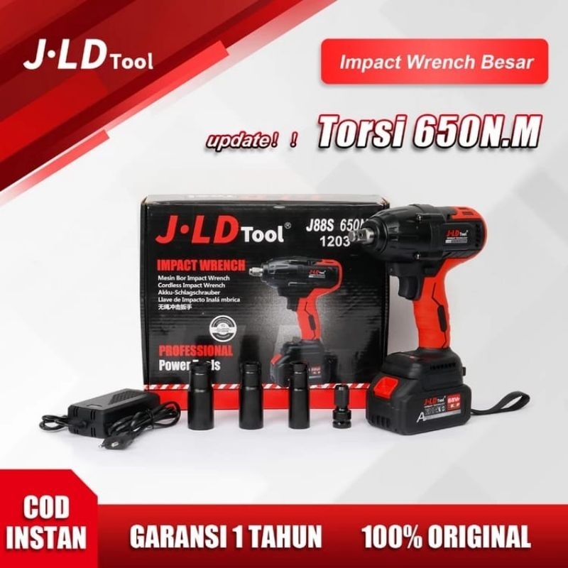 JLD Cordless Impact Wrench 88Vf J88S Brushless Torsi Besar JLD 650Nm 1 Baterai Pembuka Baut Mobil/Motor