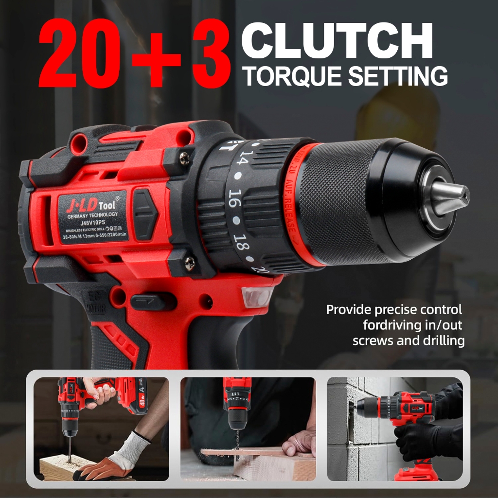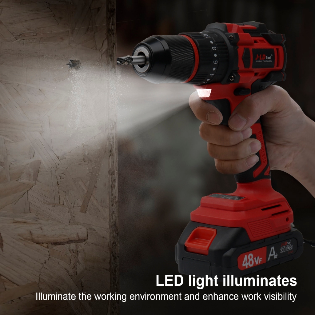JLD Brushless Mesin Bor Listrik 13MM Cordless Drill Set Bor baterai 2cas set Heavy Duty Drill Bits Screwdriver Impact Dr