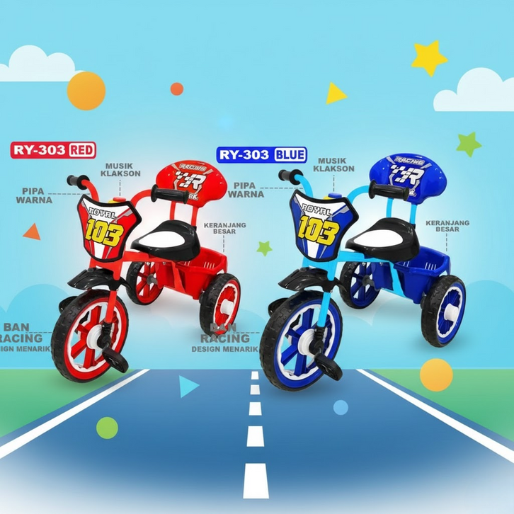 Sepeda Anak Perempuan Laki Laki Roda 3 TRICYCLE TYPE RY-303 Motif Dan Warna Menarik Usia 1-3 Tahun
