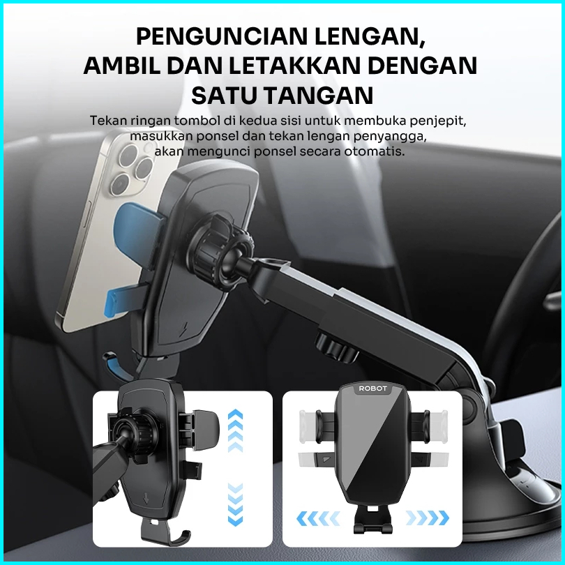 Robot Car Holder Rt-ch01s Holder Hp Mobil Rotation 360 Degree Smartphone - Garansi Resmi 1 Tahun