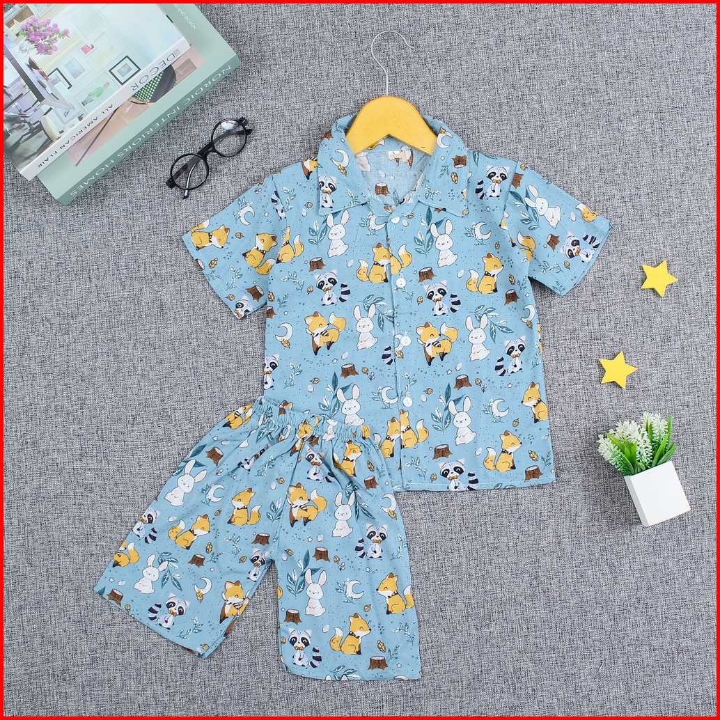 One Set Rayon Anak Set Rayon Kids 1-5th Piyama Anak Rayon Daily Wear Pajamas