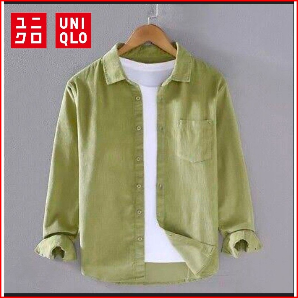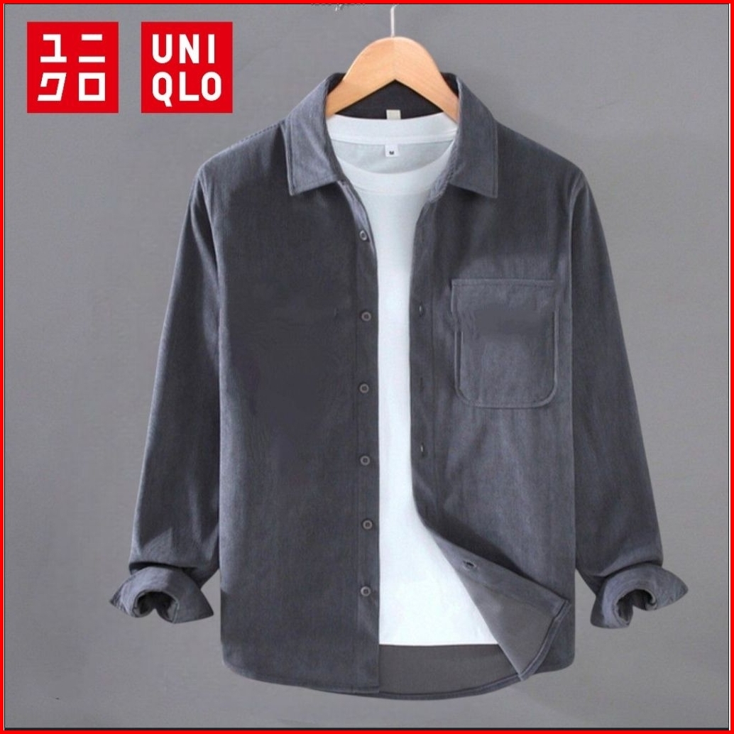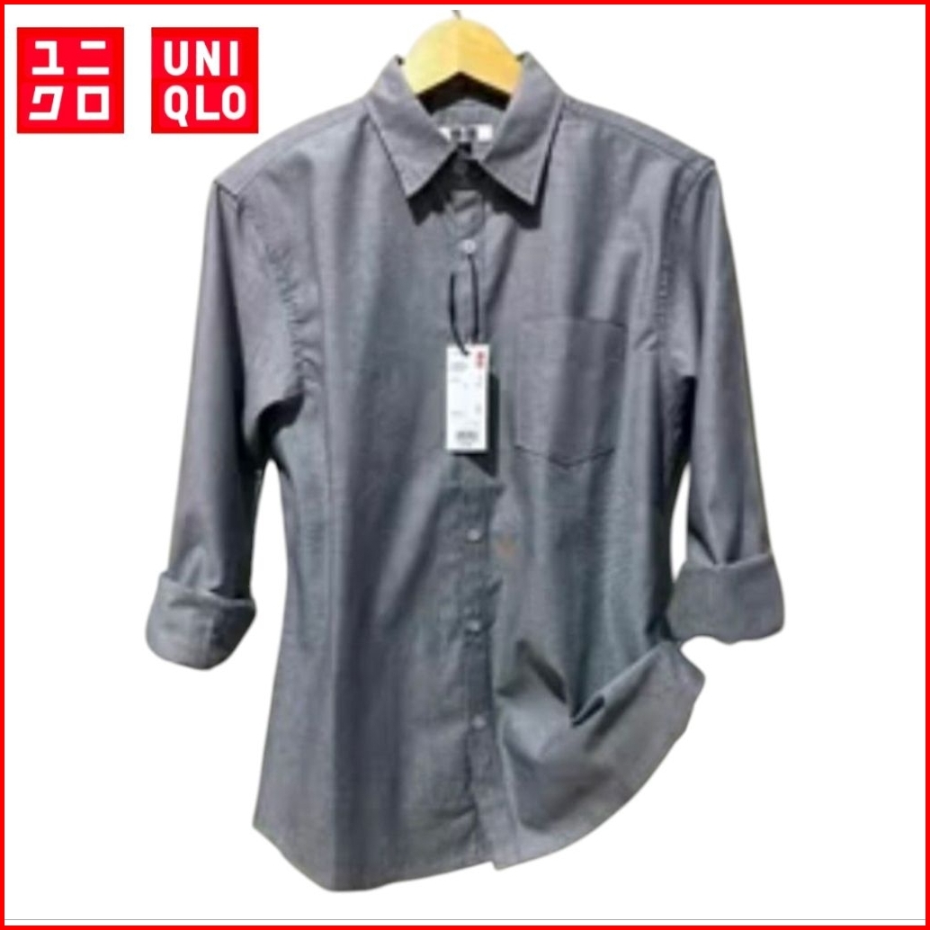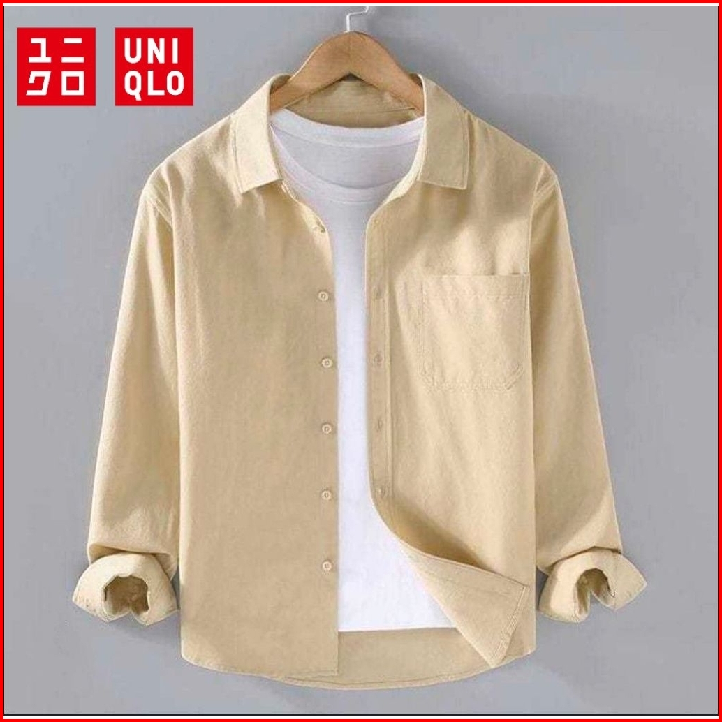 Kemeja Uniqlo Polos Pria Casual Lengan Panjang Slim Fit