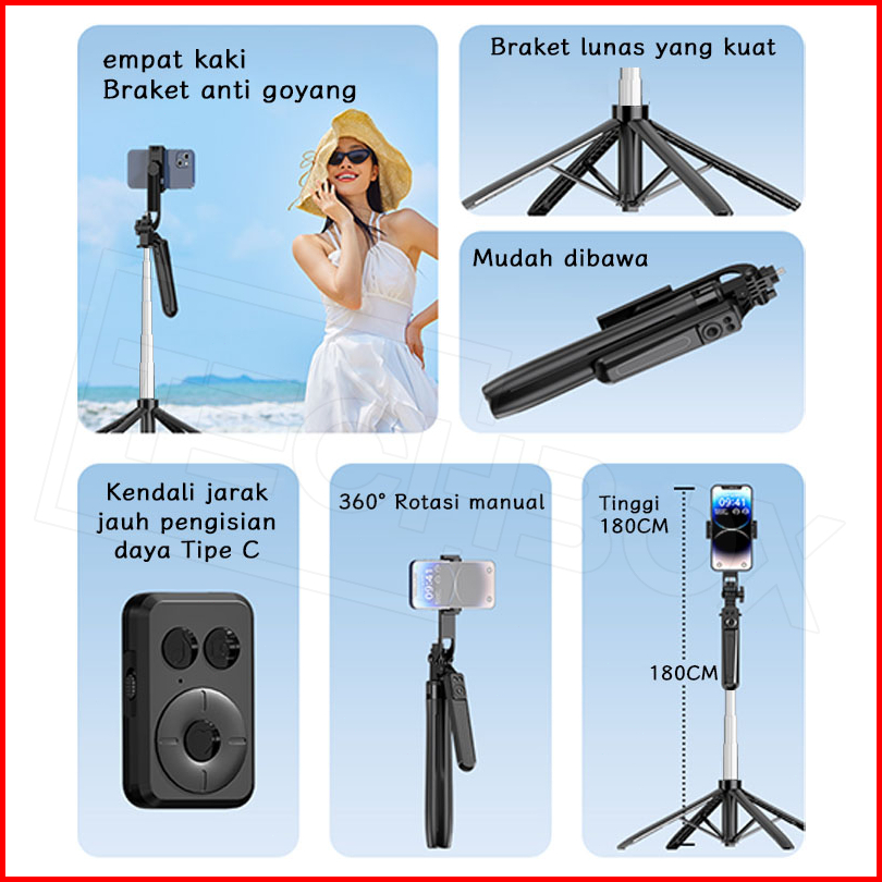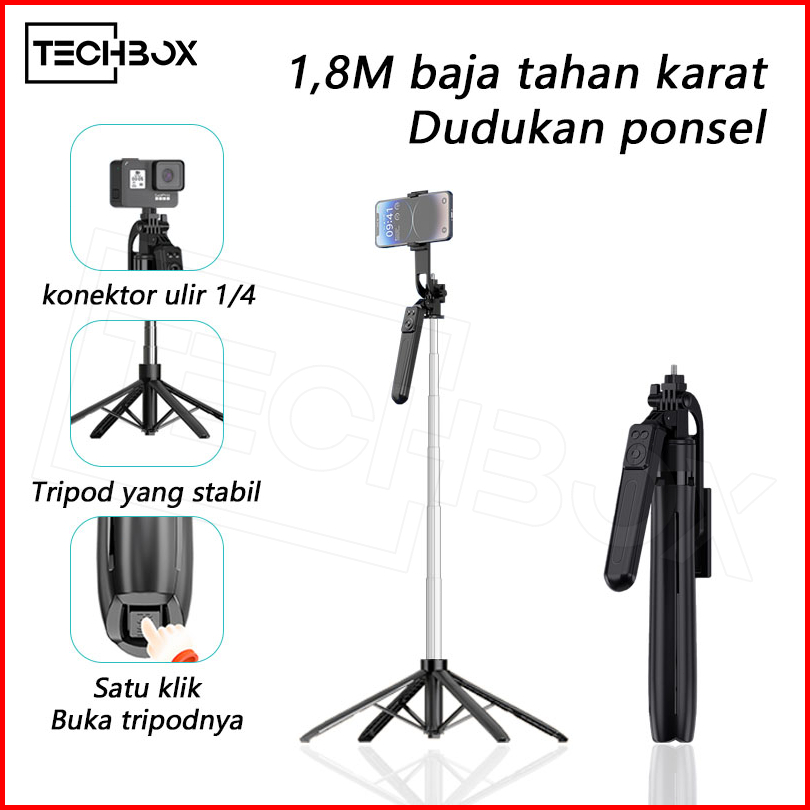 Tech Tongsis Tripod Bluetooth 180cm Paduan Aluminium Selfie Stick 4-leg Stand Remote Tripod Hp Kamera Dslr Tongsis Denga