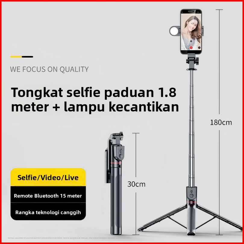 Gukoo Premium Bluetooth Tripod Selfie Stick 1.8m - Koneksi Bluetooth Bisa Buat Tripod Remote Jarak Jauh Mudah Disimpan -