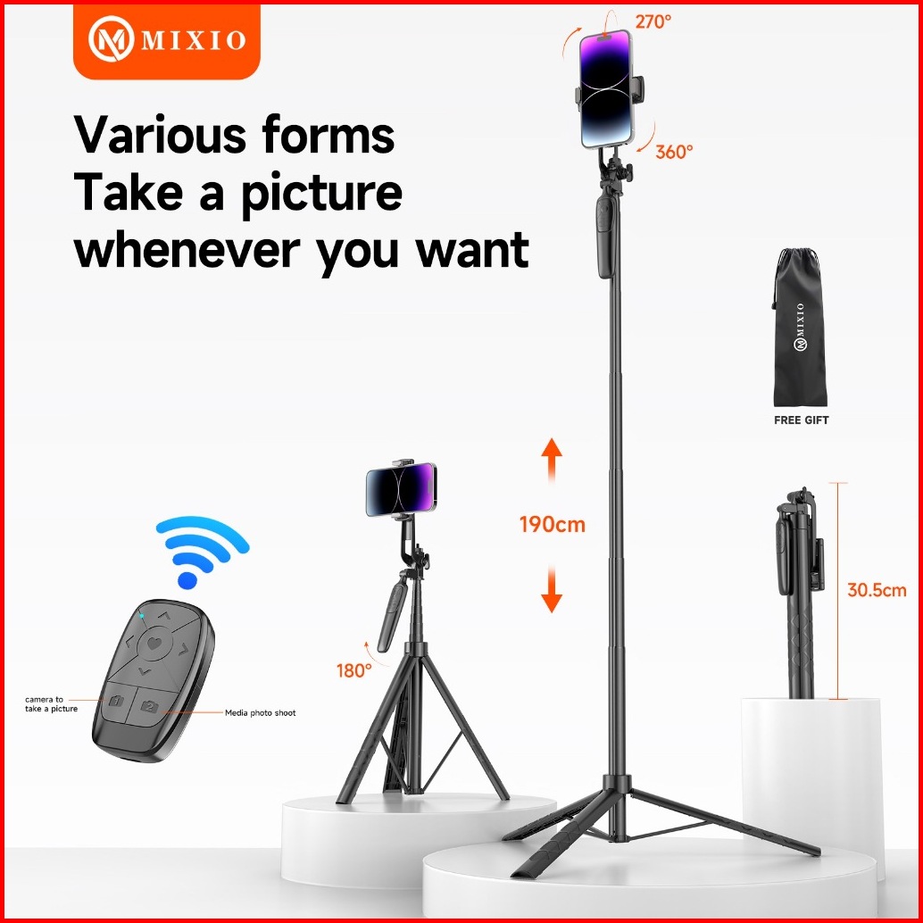 Mixio A91l 190cm Tripod Tongsis Bluetooth Remote Multifungsi Selfie Stick